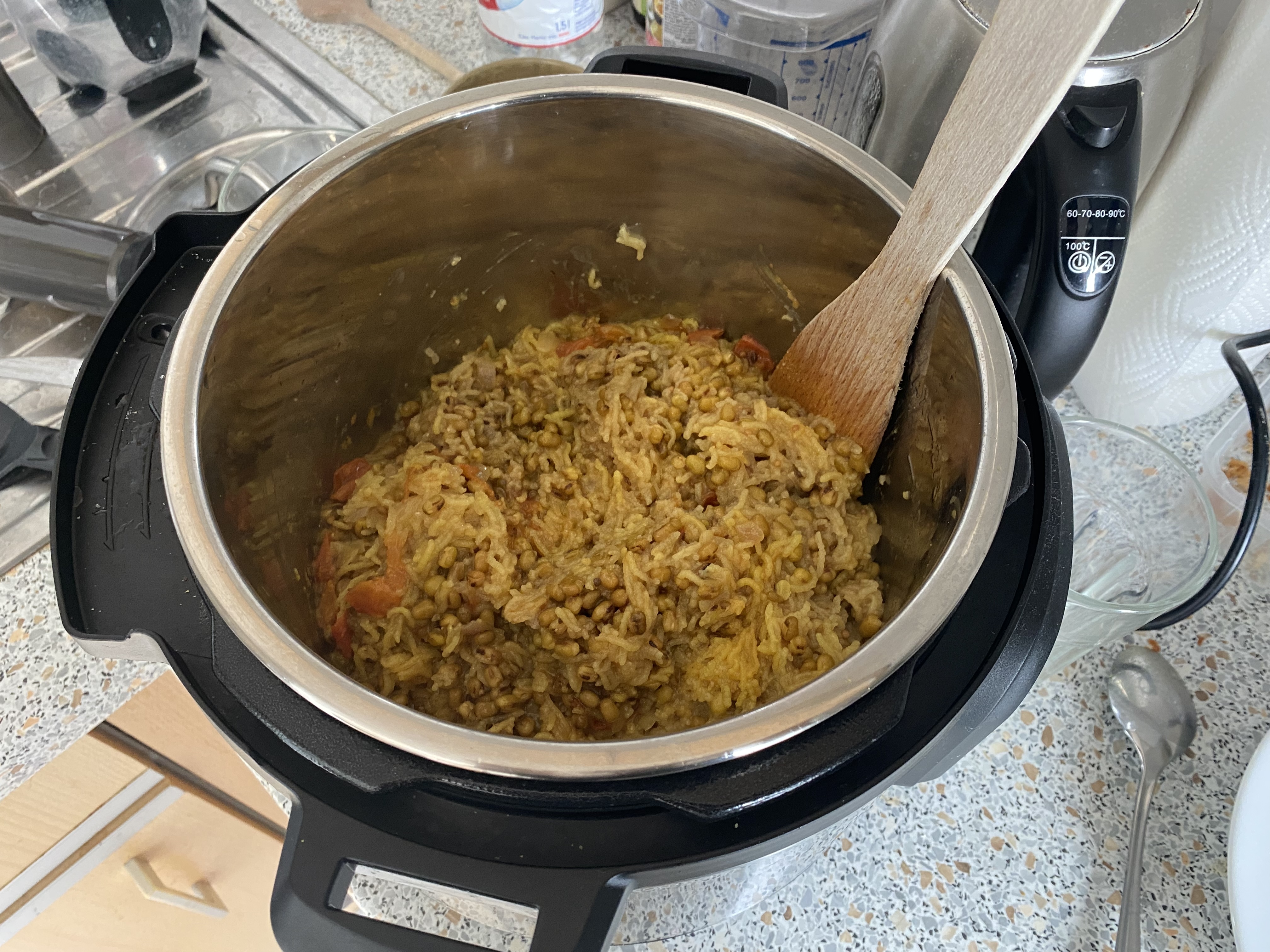 Ein sehr bekömmlicher indischer Reis-Linsen-Eintopf, der im Instant Pot einfach zubereitet werden kann und sehr variabel ist.